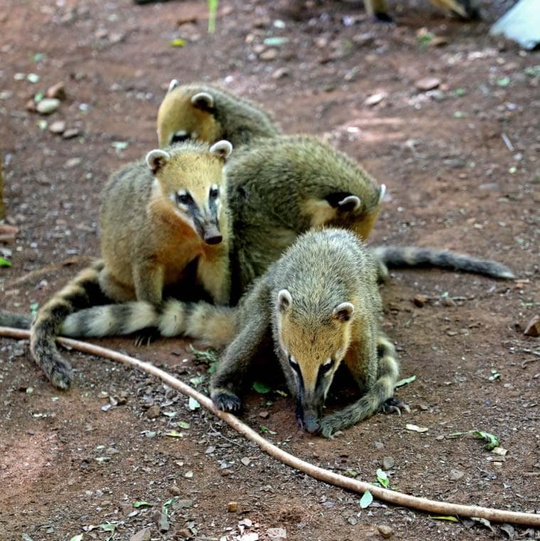 步道上,我們朝著魔鬼咽喉指標走去,隔天早上我們搭乘瀑布小火車,沿路上就可以看到許多野生動物,就在軌道旁歡迎我們。團隊相機記憶卡是準備了10張超高速64G,讓我們拍得更盡興拍出更多屬於伊瓜蘇瀑布的細節。