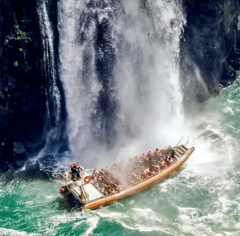 叫聲不絕於耳,奔馳而下的瀑布狠狠打到每個人身上,當下又痛又爽,而我也曾經在幾秒時間當中,是完全不能呼吸的那種慘狀,我也分不清楚所有當下狀況,竟然直接感動到哭,分不清楚臉上的是淚水還是兇猛的瀑布水,能夠置身在這樣的大自然懷抱裡、實際地每寸肌膚去感受大自然最真實的按摩,瞬間快艇已經開出來,船長問我們,要不要再來一次!大家都一口同聲回答『OffCoure』衝瀑還沒有結束,這次船長故意把我們帶到水量最大最猛的那個瀑布群下方,還要我們把持好手上的3D紀錄器,從來沒有過的淬鍊與洗滌,忽然間感覺自己是深陷在超大洗衣槽裡,隨他澆灌與翻騰,而船上幾個來自於歐洲的年輕人還當下跟我們要檔案,完整記錄衝瀑的震撼與瞬間的永恆。
