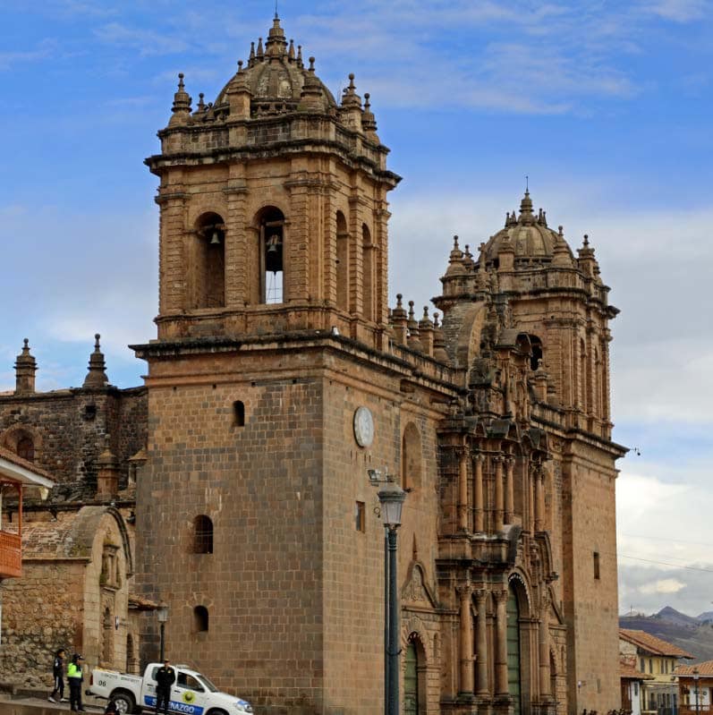 這座建築分兩個階段建造:首先,凱旋教堂建在舊SunturWasi(上帝之家)寺廟的頂部;後來,大教堂建在印加維拉科查宮殿的頂上。庫斯科大教堂,不只是一座可以讓觀光客拍拍照,到此一遊的冰冷建築物,蘊藏的文化底蘊,你可以從許多圖騰與線條,深刻察覺在建築外觀和內部採用文藝復興風格,內部有精美的雪松和榿木雕刻。唱詩班和講壇以其美麗而聞名。大教堂內依舊保存了庫斯科學派的重要繪畫收藏以及浮雕銀器,只可惜我們無法進入。