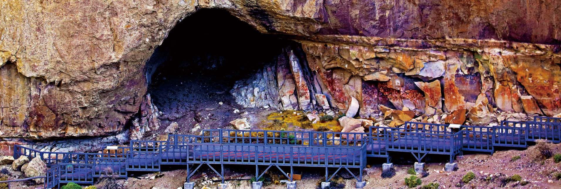 源自洞穴中人類雙手的模板輪廓,但也有許多動物的描繪,例如在該地區仍然常見的原駝(Lama guanicoe),以及狩獵場景描繪動物和人物以動態和自然的方式互動。整個地區,不僅僅是洞穴,包括佩里托莫雷諾國家公園,都是一個豐富的考古和古生物學遺址。這裡的山谷、峽谷、湖泊和河流孕育著洞穴壁畫和不同類型的考古遺址,這些遺址是在基督誕生之前14,000年前人類在田間行走的遺跡。