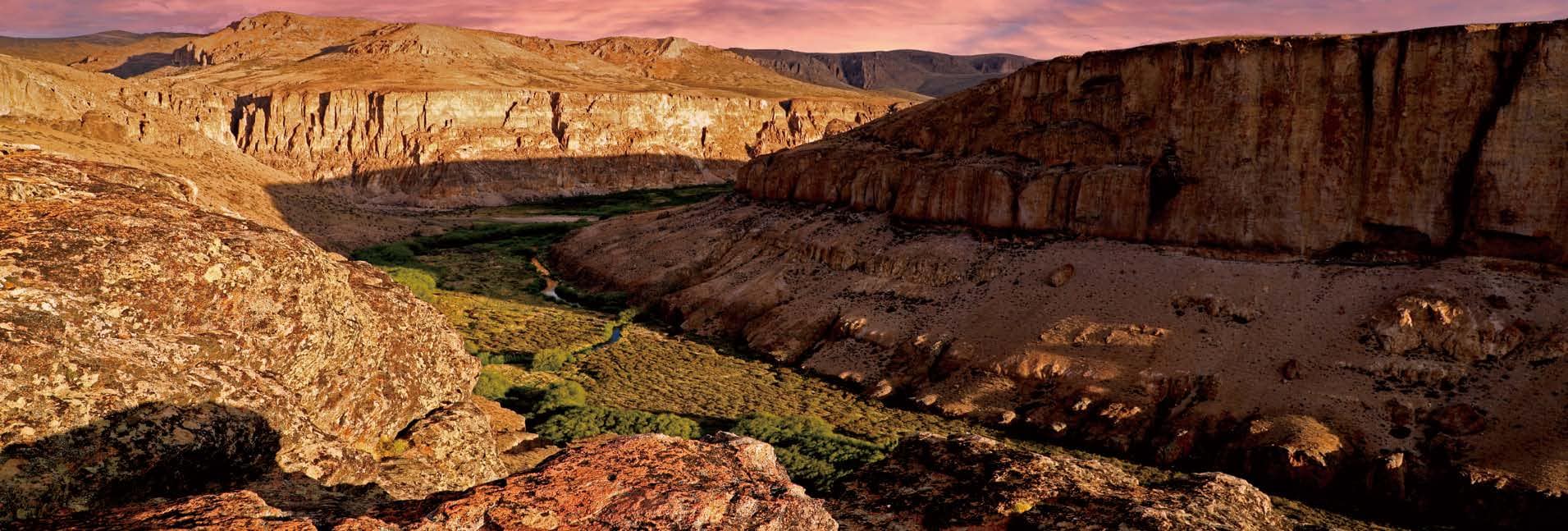 我們從格雷戈雷斯省長鎮,一路北上,走阿根廷40號公路,一路狂飆全部都是一望無際的高原荒漠,經過了大約250公里左右後,然後到達一個名為BajoCaracoles的小鎮,右轉進入,繼續行駛約30公里。景色瞬間轉變為山壁抖壑,更多的羊駝跳躍在廣大峭壁視野中。趕路的行程,迫使我們在一個車寬的碎石頭路上,不斷的馳騁狂奔。驚豔的事發生了,車上有人高喊『那是不是美洲獅?』好大隻好大隻!