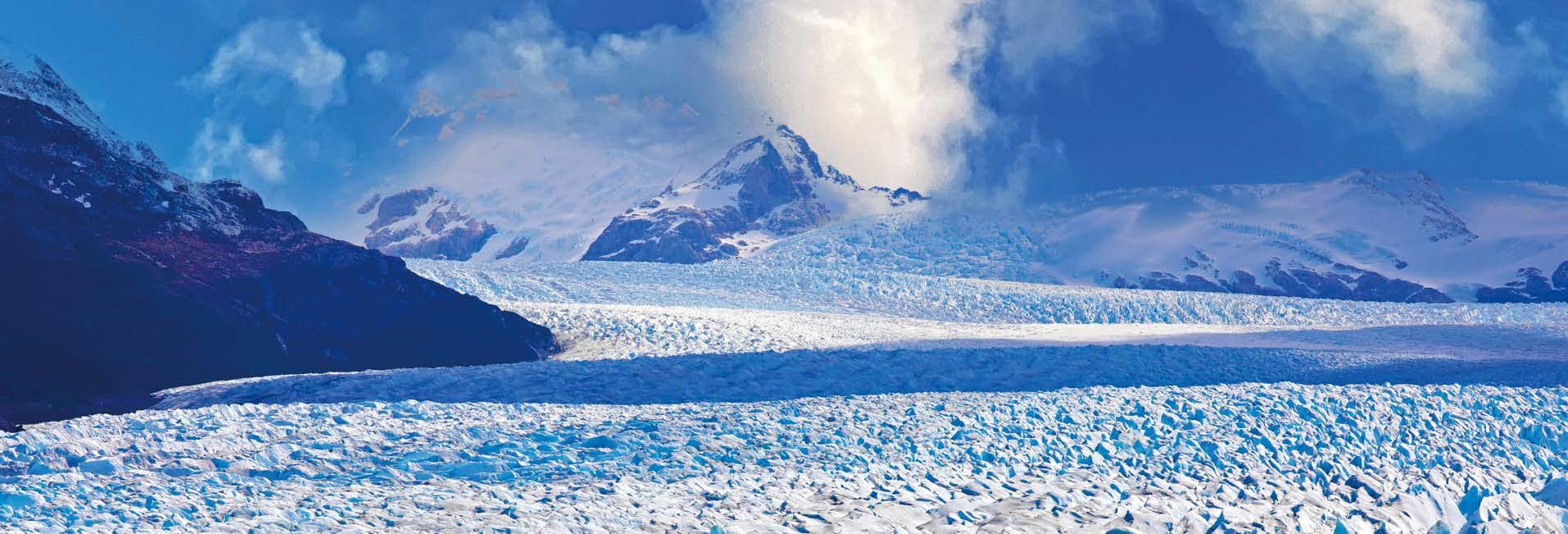 而整個冰河國家公園它的名字指的是冰蓋上誕生的冰川,冰蓋是繼南極洲之後最大的大陸冰延伸,佔據了幾乎一半的面積。也稱為巴塔哥尼亞大陸冰,形成了47條大冰川,其中13條流向大西洋。還有200多個較小的冰川,與冰蓋不相連。