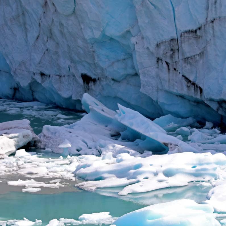 『冰舌』寬度寬達5公里,冰川高度高於湖面70-80公尺,湖面下深度為170米。破碎漂浮的碎冰,可是所謂的冰山一角。