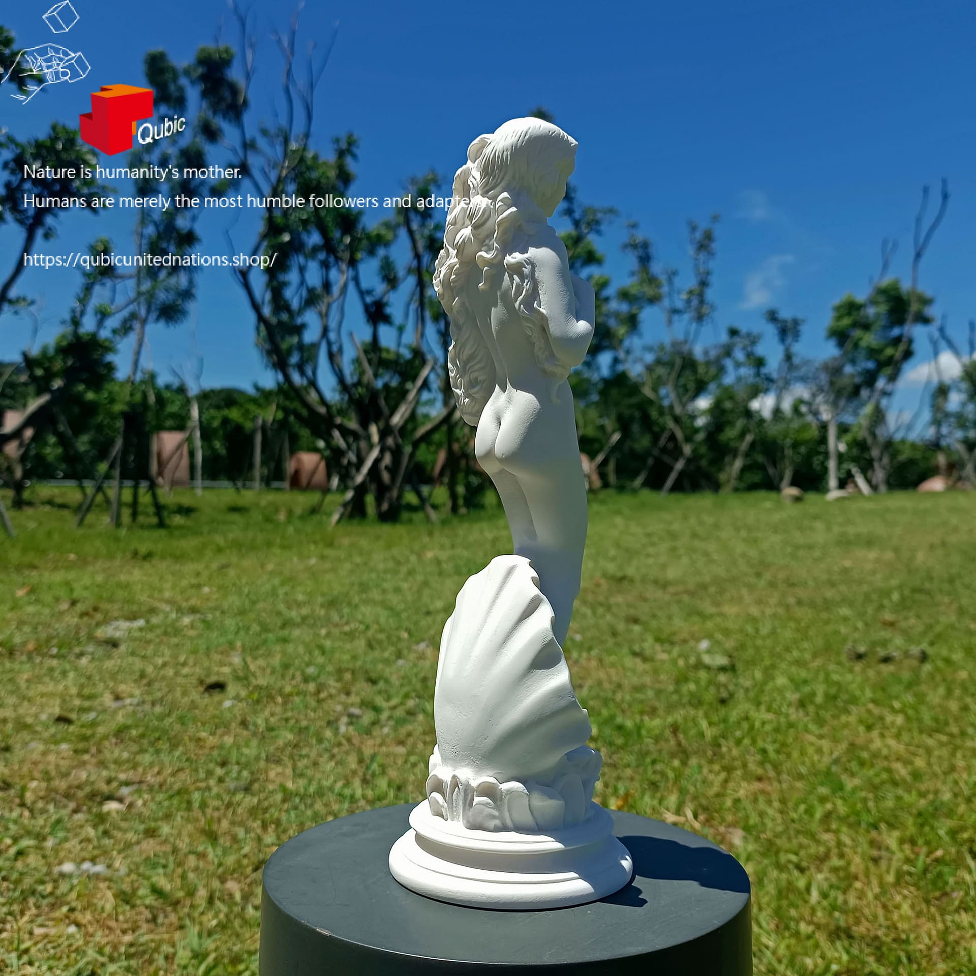“Venus in the Shell” depicts Aphrodite, the goddess of love and beauty, in one of her most iconic forms. Born from the sea foam, she stands upon a great shell, symbolizing purity, grace, and rebirth. This snowflake gypsum sculpture delicately captures the goddess’ emergence from the sea, bringing romance and elegance into any space.