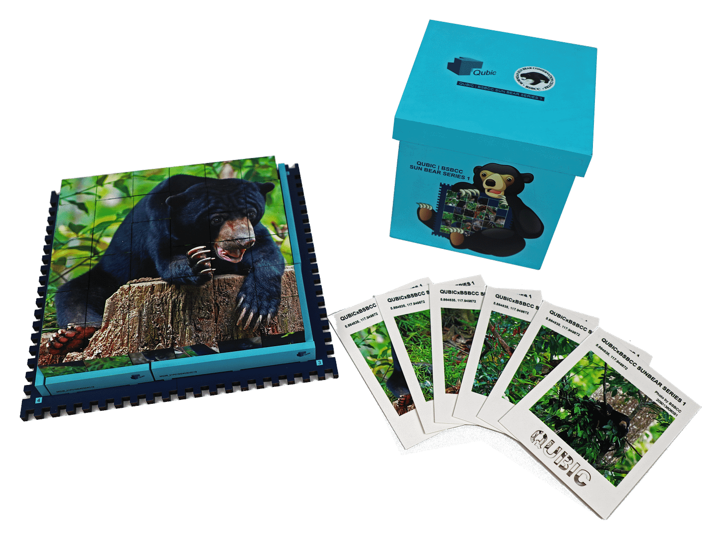 QUBIC 與馬來熊保育中心攜手合作,無償開發專屬拼圖系列商品,將銷售收益的一部分捐贈給保育中心,用於支持瀕危物種的照護與棲地維護。透過此專案,QUBIC 不僅為馬來熊的日常營運注入穩定資金來源,也在保育中心設立據點,持續推動環境教育與保育意識的擴散。