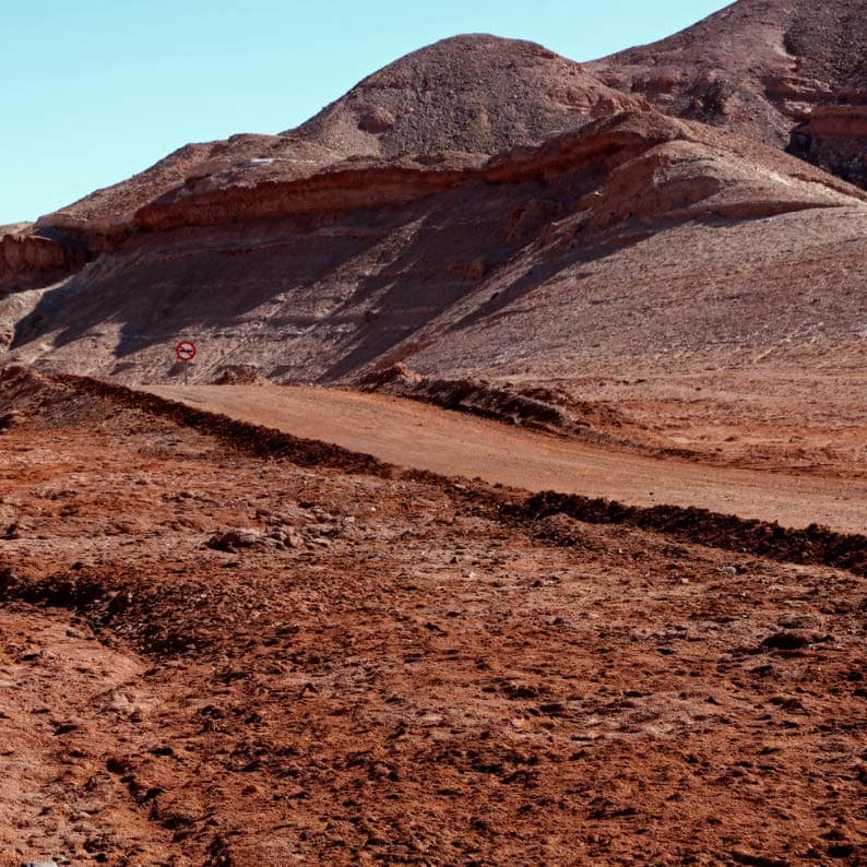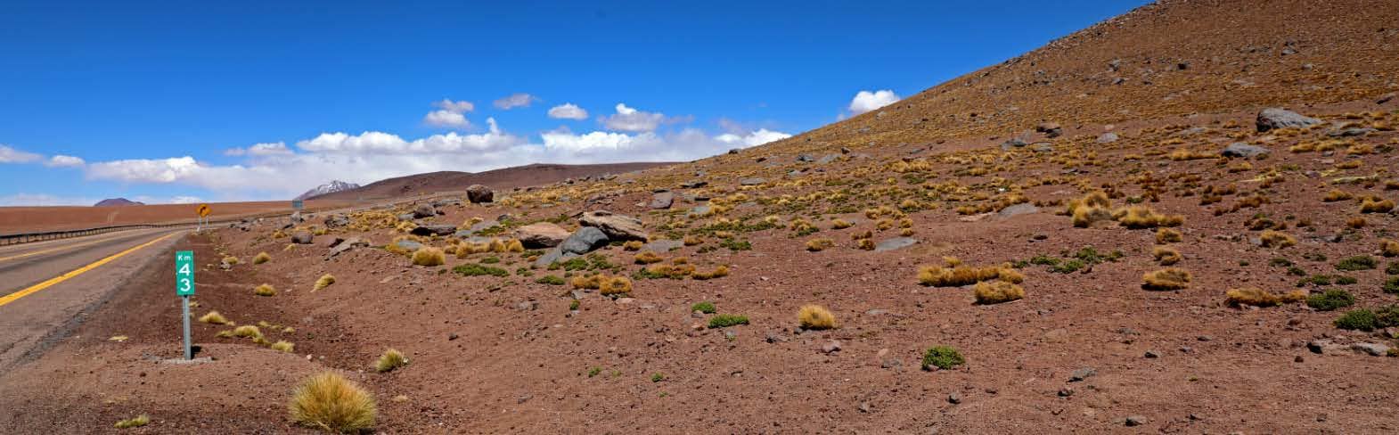 按照Google導航路線前進,沿路景色直接將我們這團人,帶進入了月球表面及火星上頭。同時我們的呼吸間,呼吸到的除了微薄空氣外,就是極度乾燥粉塵漂散在空氣當中。滾燙的礫石路面,車廂溫度已經緩慢在升高中,我擔心整車會燒起來。(在兩天後,同一輛車在爬4850公尺的地球上最高天文台時,發生水箱溫度瞬間飆高,整個引擎室已經冒煙,我當時即時關掉引擎,強迫打開水箱添加口,瞬間是噴出高溫的,馬上降低壓力與溫度,不然不然又會讓很多人成為茶餘飯後的故事了……)